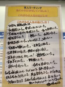 今回の認知症本人ミーティングでは「私こんな仕事をしていました!これからの人生の過ごし方」をしました。メンバーさんがしていた仕事を振り返り、今後どう過ごしていくかミーティングしました。「50過ぎて清掃の仕事していた」「今も賃貸業している。寿司屋の女将さんしてた」「兄の会社の会計と経理をしていた」「私も経理していた」「呉服屋やっていた」「事務していた」「和裁してました」「郵便局で働いていた、辛くはなかった。20年くらい」「学生服の内職していた」「公務員してました」「医療事務してました。徹夜で仕事してました」「運転手してました。タクシーの」「美容部員してました」「会社員していた」「事務職していた」「病院の受付していた」「受付も経理もしていた」「家で折り紙してます」「テレビ観ている」「友達と散歩している」「区民広場4か所も行っている」「絵画教室行っている」「ボーリングしている」「1か月に20日以上公園の花壇の手入れしている」「マージャン行ってる」「新しい人とのコミュニケーションを大事にしたい」「女性の会に入っている」と語られました。今回もメンバーさん同士の意見交換がとても活発であり、同じ悩みを抱えているメンバー同士悩みや想いを分かち合いました。次回12月のサークルも参加お待ちしております。